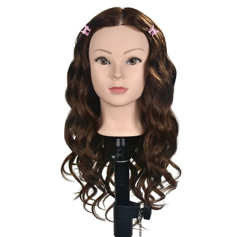 20" Human Hair Training Head Long Brown Hair for Salon Hairdressing Dummy Dolls Professional Perm B