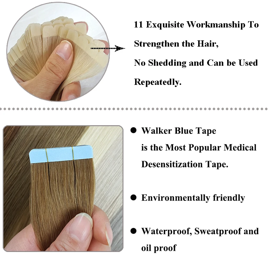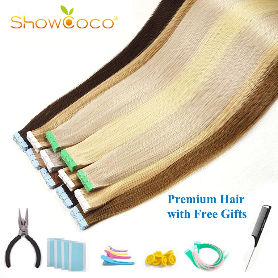 ShowCoco Walker Blue Tape in Human Hair Extensions Virgin Remy Hair 10A Salon Quality Tape Hair Ext